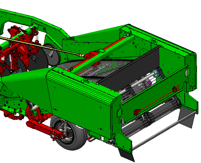 1. Potato seedling separation mechanism: It is mainly composed of stalk rolls and pressure barriers, which separates potato stalks and potatoes, and has the function of removing potato stalks and weeds.