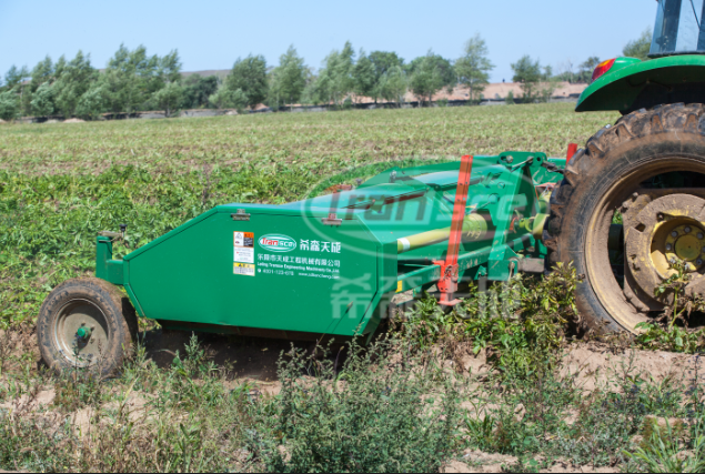 本产品是四垄四行杀秧机,适合垄距为900mm,可一次完成秧苗的切除与梳理分流作业。通过马铃薯机械杀秧,是马铃薯块茎的表皮充分木栓化,与茎秧分离更加容易,表皮的老化也可以显著减少收获该机操作方便、碎秧效果好,可靠性好,作业效率高,保证商品薯品质,粉碎后的茎秧还田,可提高土壤肥力。该马铃薯杀秧机适用于90厘米垄距,垄高在15~30厘米之间,且垄形周长不大于110厘米的马铃薯收获前的秧苗割杀。其作业时要求土壤含水率不大于25%,建议作业速度为每小时4~7千米。该机在华北、东北、西北等地区得到了广泛应用。